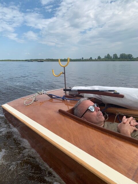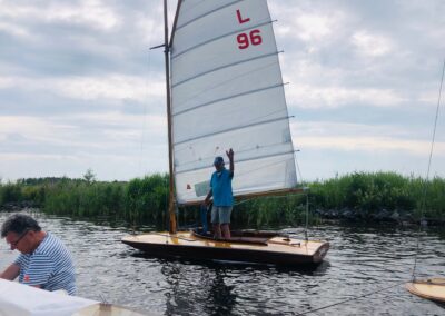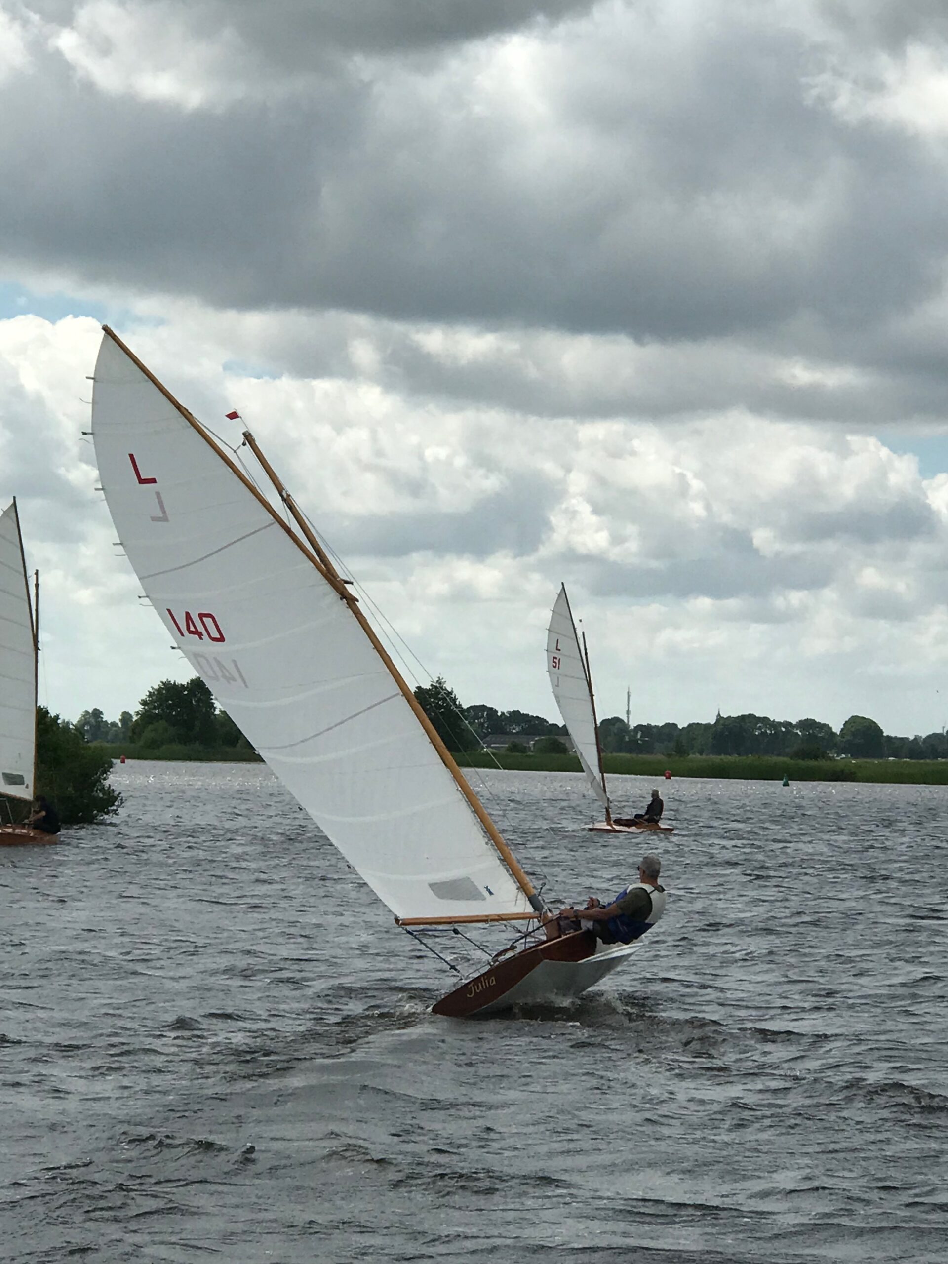 We hadden beide dagen in verband met de wind afgesproken om gereefd te varen en dat bleek een goed idee te zijn. Er is een gezegde dat luidt: “Ziet men vrouw en kerk reeds staan dan is de reis nog niet gedaan”. Dat bleek voor Johan te kloppen want hij ging vanaf een koppositie 500 meter voor de finish ten onder.