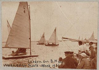 De Lark ontstond in de jaren ’30, ontworpen door Sneekers Johannes Oly en L. van der Wey. Zelf een boot bouwen was toen heel normaal – sterker nog, het was vaak de enige manier om überhaupt het water op te kunnen, zeker tijdens de crisisjaren. De Lark was daar perfect voor: een no-nonsense boot van hout, met vaste kiel (dus geen midzwaard), lekker breed en stabiel. Het vleermuistuig maakte ‘m opvallend, en met 11 m² zeil op een romp van 4 meter lang kon je er prima mee uit de voeten.